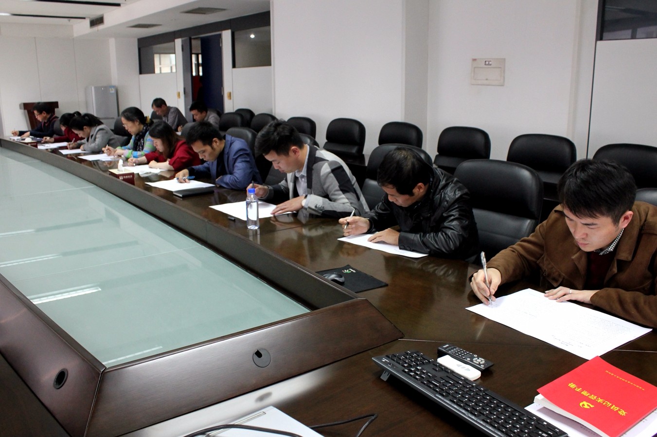 国盛公司对此高度重视,及时将通知精神传达到每位党员。按照市财政局要求将系列学习文件利用微信等网络手段进行推送,及时发布党建知识,带领全体党员认真学习中央“八项规定”、《中国共产党党员领导干部廉洁从政若干准则》及省、市委“十项规定”等,进一步提高了党员的思想认识。并于11月7日下午,组织党员进行了模拟测试。国盛公司党总支书记、董事长赵丽带头参与,考前对纪律进行了强调,并要求大家根据本次测试情况进行自我完善和提高。在测试过程中,党员们认真答卷,均独立完成了测试。