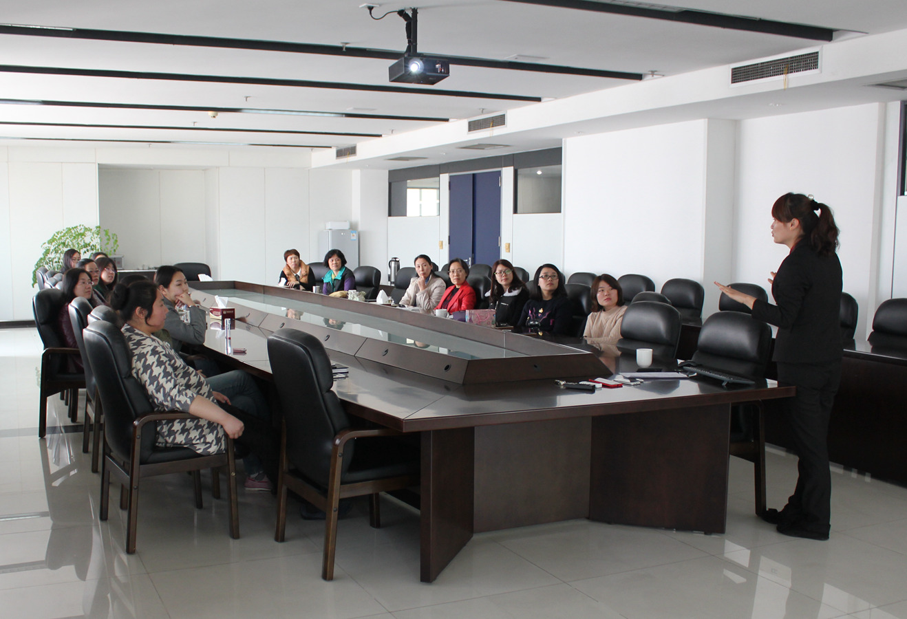 为庆祝国际“三八”妇女节,提升女员工职业形象,国盛公司专门邀请国盛酒店培训经理张杰为公司女员工进行“职业妆及职业装”专题讲座。