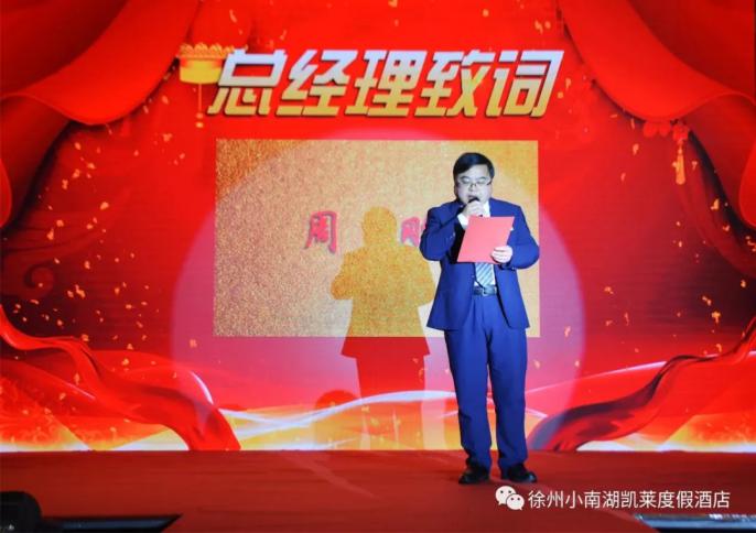 2月11日,国盛酒店2017年度表彰大会在小南湖厅召开。会上,国盛酒店总经理周刚发表新年致辞。